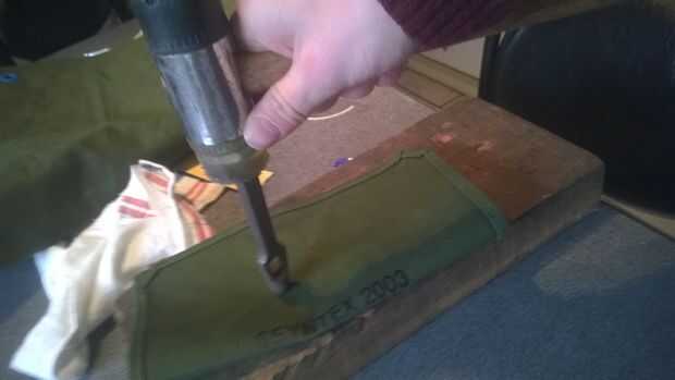 • Punch de 4 agujeros con el ojete punzón herramienta en cada esquina. Es mejor probar esto primero con un trozo sobrante de materia textil.