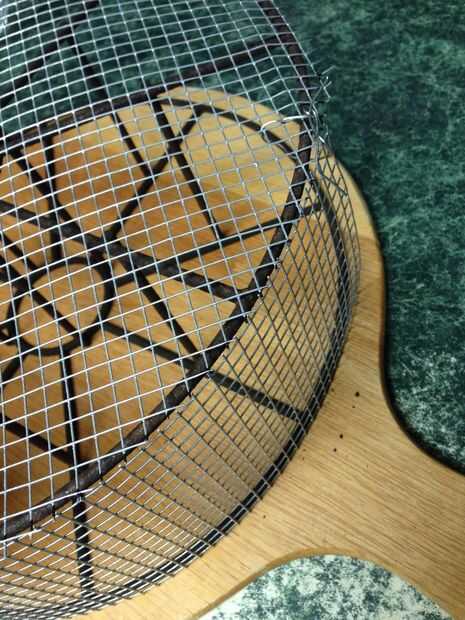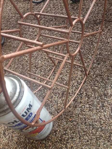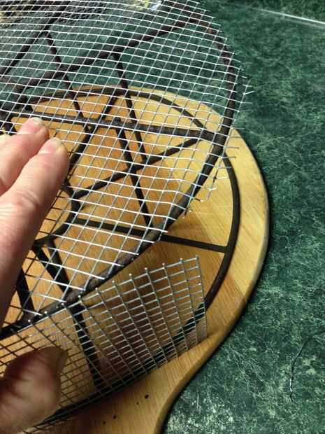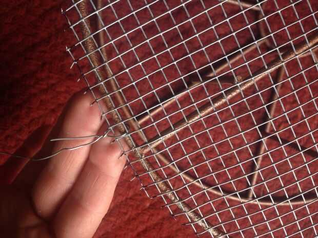 Coloque el carrete en una superficie plana. Pone uno de la malla de alambre