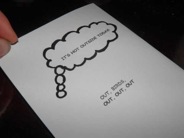 Luego sólo use un marcador permanente y dibuja una burbuja de pensamiento o palabra alrededor de las palabras. Que sea gruesa.