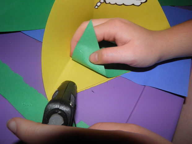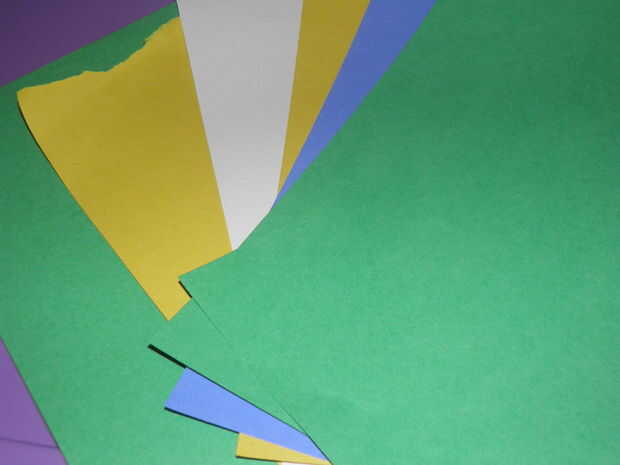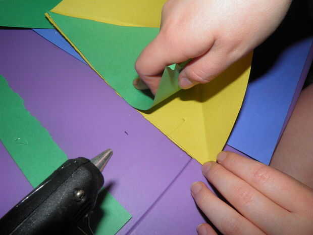 Necesita papeles de colores, un palillo del pegamento o una pistola de pegamento y tijeras para este paso.