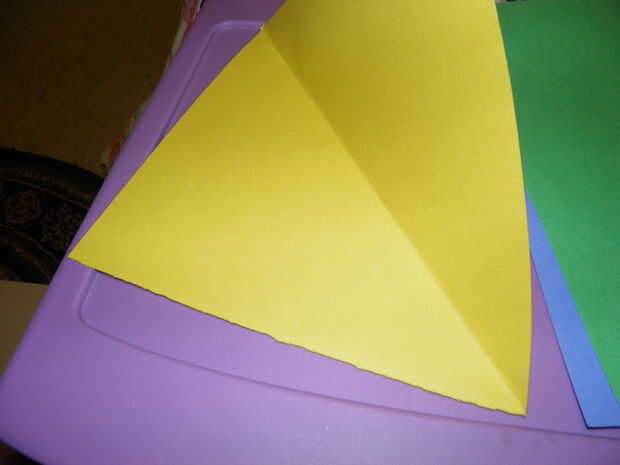 Para hacer el pasto, hacer los mismos pasos con papel verde, pero en lugar de plegado sobre y pegado, solo recortar cada uno de los triángulos y puede pegar en la parte inferior de cuatro diferentes.