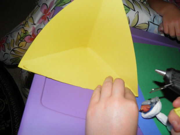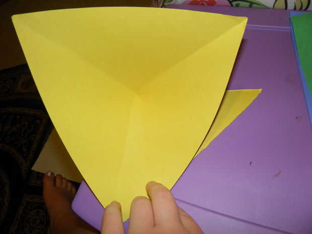 Ahora toma las dos áreas triangulares que son por el corte y doblan uno encima del otro. Péguelo allí.