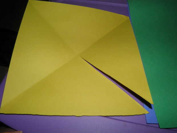En primer lugar tomar un papel y dóblalo en diagonal. A continuación, corte la tira extra de papel que sobresale cuando se doblar diagonalmente. Esto hará que una plaza cuando se despliegan.