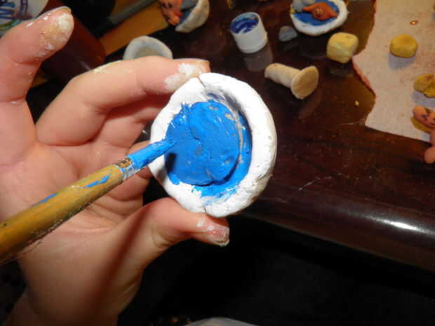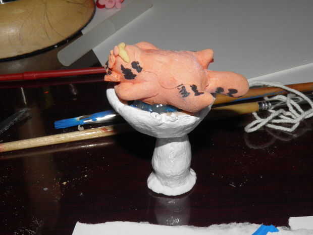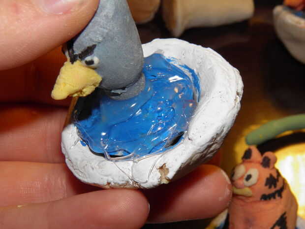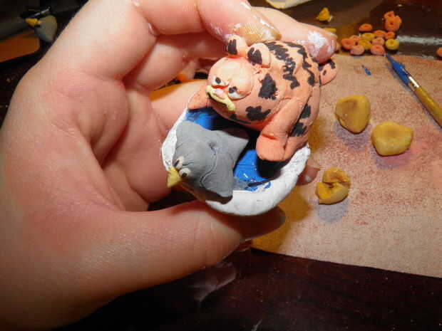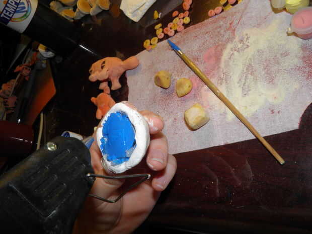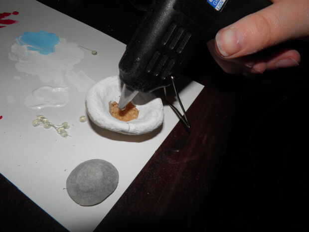 Esto es donde colocas todas las piezas hicieron juntos. Utilice la pistola de pegamento caliente para unir piezas. Añadir cualquier material especial que está usando. Esta parte es bastante fácil, que solo pones todo juntos como usted quiere que vaya excepto el fondo y las burbujas de pensamiento o palabra. En este punto, puede volver a cubrir algunas partes con pintura.