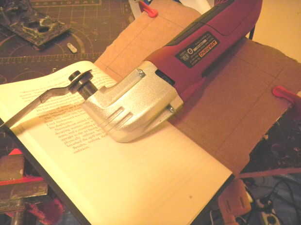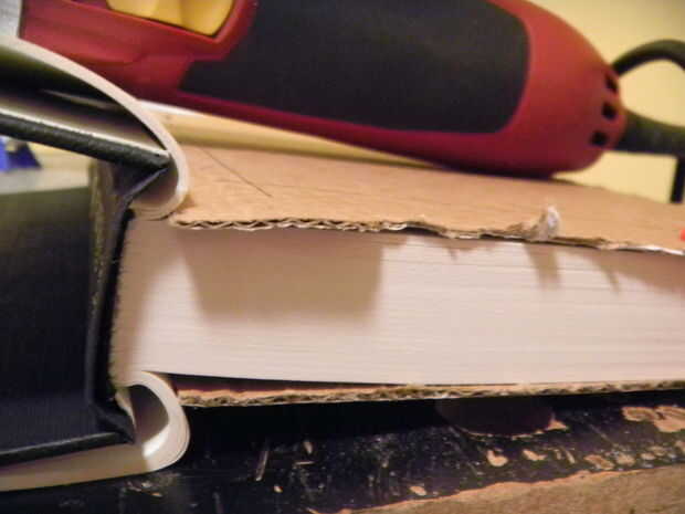 Terminé de doblar hacia atrás la cubierta frontal y posterior y cortando a través de ambas piezas de cartón para intentar hacer mas cortes.