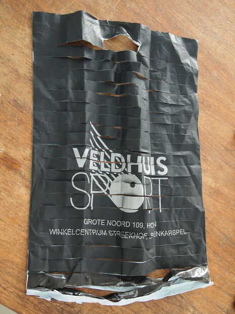Ahora despliegue la bolsa y corte suelto y el mango-bit así como el poco fondo de la basura. Ahora tenemos que hacer los cortes en una tira larga. Por un lado de la bolsa, siguen la raja todo el camino, entonces la bolsa se verá así: