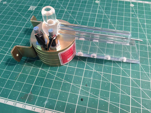 Luego el tubo redondeado no entra en el agujero en el centro del solenoide. no pegue en este momento, mientras esperaba para conseguir todas las piezas antes del pegado final.