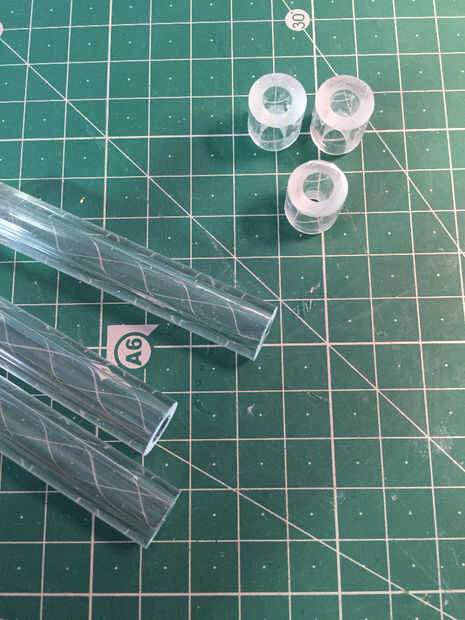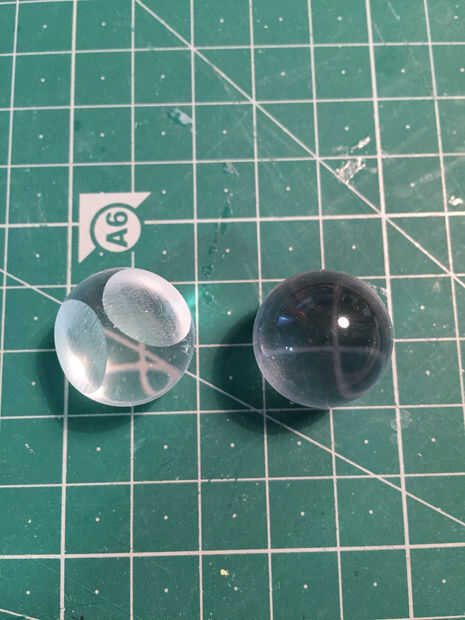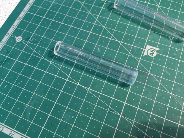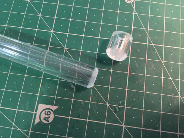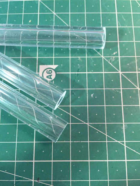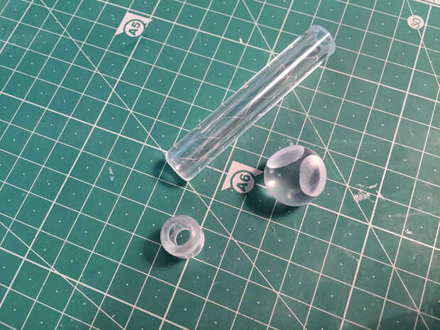 Para ello usé el tubo de plexiglás de 12mm y la bola de metacrilato.