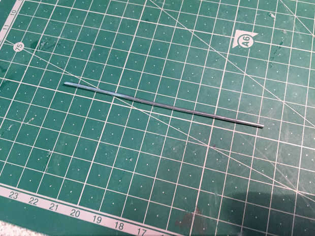 una vez todos los tubos de una han sido pegados en y el pegamento seco corte una longitud de alambre de 1mm en una longitud recta de 85mm y pegué en el el tubo de modo que sobresalga del tubo de 70 mm.