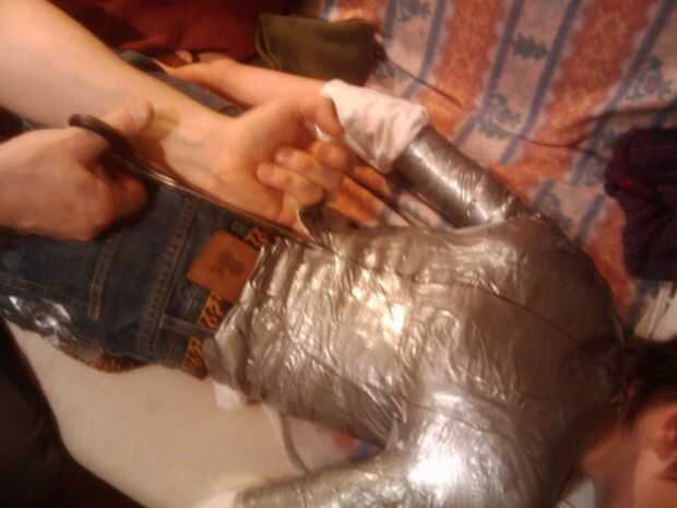 volar sobre una patineta en su nuevo windsurfista de cinta de conducto!Paso 1: Lo que se necesita 3 o 4 rollos de cinta adhesiva para conductos (marca Ace es el mejor, es light)TijerasPeriódico2 palos rectosPaso 2: Grabar el conducto 1. Colocar 4 hoj