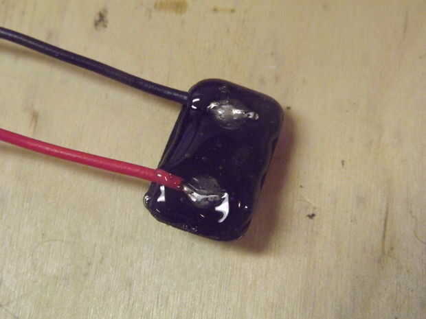 Ahora a añadir un pequeño apoyo adicional para los cables tomar y cubrir la parte posterior con pegamento caliente para cubrir el alambre. Otra forma sería tomar la cinta eléctrica y cubrir las conexiones pero esto agregará muy poco apoyo y tendrá que ser reemplazado después de un rato de uso.