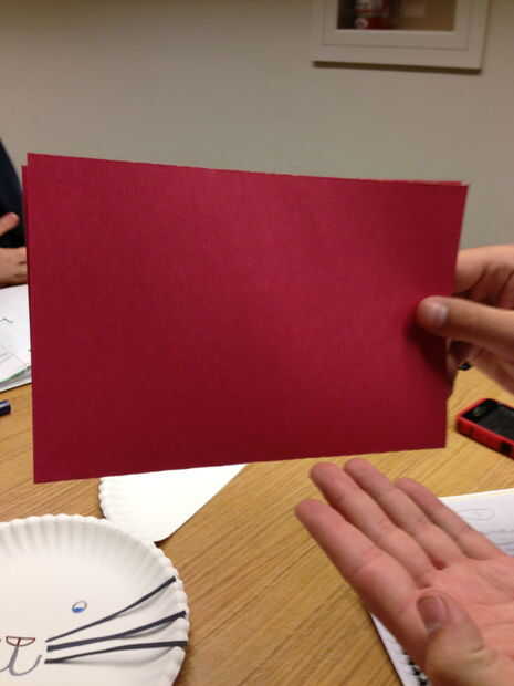 Toma una hoja de papel de construcción rojo o rosado y doble estilo media hamburguesa