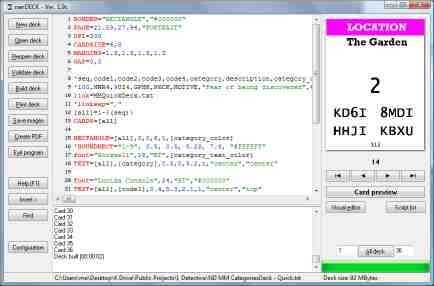 http://www.nand.it/nandeck/. Con este software usted puede diseñar tarjetas para imprimir en papel de computadora regular. nanDeck también hace un gran trabajo de automatizar la creación de tarjetas por lo que le permite repetir elementos de diseño (como el título y el color en el ejemplo) a través de múltiples tarjetas. Además puede conducir la creación de las tarjetas de los archivos de datos para facilitar el manejo y gran número de únicos tarjetas (piense en magia).