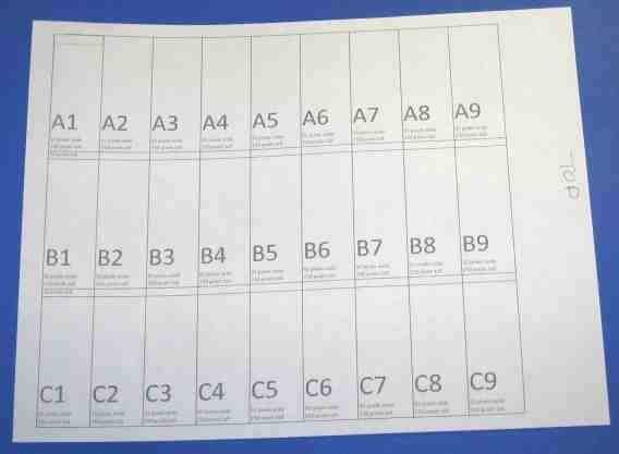 La primera es usar Excel o una hoja de cálculo similar como se muestra en la plantilla a continuación. Esto me permitió imprimir verticalmente en las etiquetas (maneras de lado) que la orientación de la tarjeta.