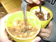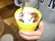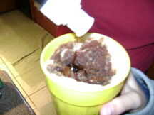 Ahora necesita agregar sabor si quieres sabor como algo más que nieve. Arroje a chorros el sabor en la taza con la nieve y revolver con la cuchara.