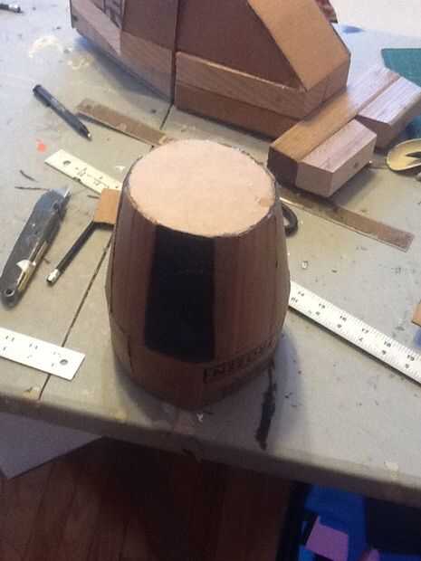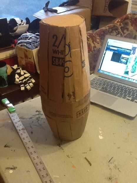 Desde allí, usted comenzará a hacer el contenedor mezclador real. Hace dos círculos y una banda y conectado con las tiras para formar un cono. (Foto 3)... Esto me recuerda un poco ese frasco de goop de la película Prometheus