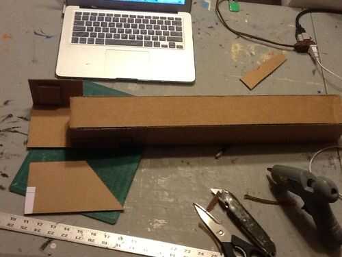 • Para el gancho, yo simplemente bosquejado un gancho en cartulina, cortado para hacer unas pocas piezas 3d... entonces usé alguna cadena de calzado y y a un medio círculo en el otro extremo de la viga. (fig 5)