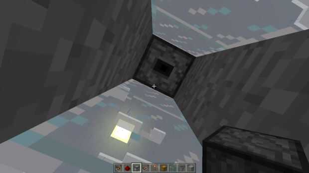 Desde el centro de la torre, cavar un agujero profundos 3 cuadras. Desde el fondo del agujero, hacer una habitación a 4 cuadras de largo, 2 cuadras de ancho y a 2 cuadras de alta. Dar un paso como la apertura a la superficie desde una esquina de la habitación (como en la imagen 3).