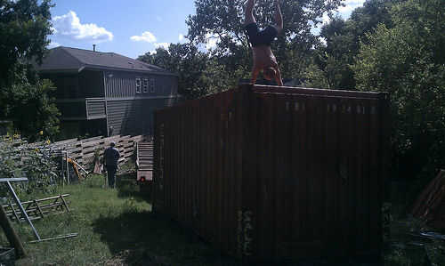 Mientras que he hecho muy poco para convertir el envase desde que en mi patio hace aproximadamente un año, ha hecho una gran terraza, garaje y pieza de conversación. Buena suerte, obtener su propia caja metálica grande; por favor comenten con fotos como vas!