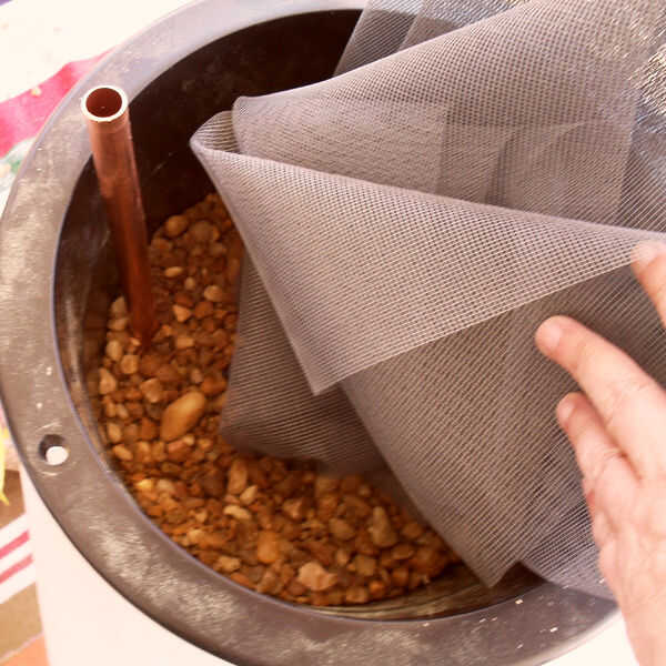 Si desea puede poner unas piedras para ayudar a mantener el tubo en su lugar.