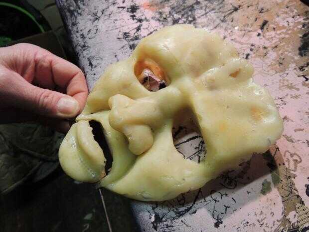 Aquí se puede ver la boca con bisagras de la marioneta, a la que fue atado el actuador de la puerta de coche...
