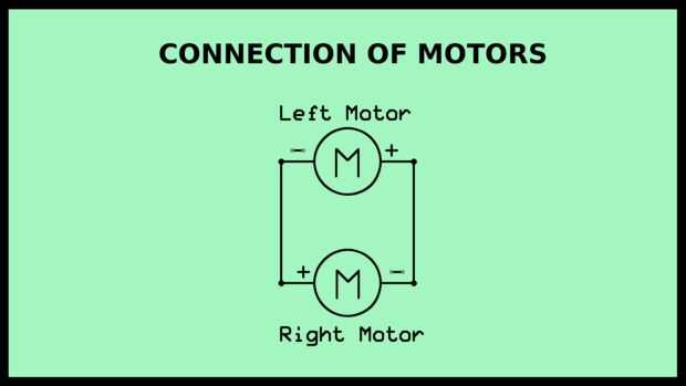 4. Conecte los dos motores opuestos que el + ve cable de un motor está en contacto con el cable - ve del otro motor (consulte el esquema para los detalles)