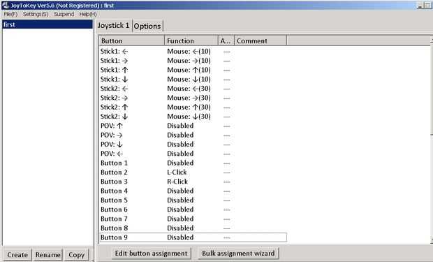Para un buen punto de partida puede ver la imagen anterior y confirmar que los ajustes son idénticos o similares. Si todo es como usted quiere, puede minimizar el programa JoyToKey y usar el controlador como el ratón.