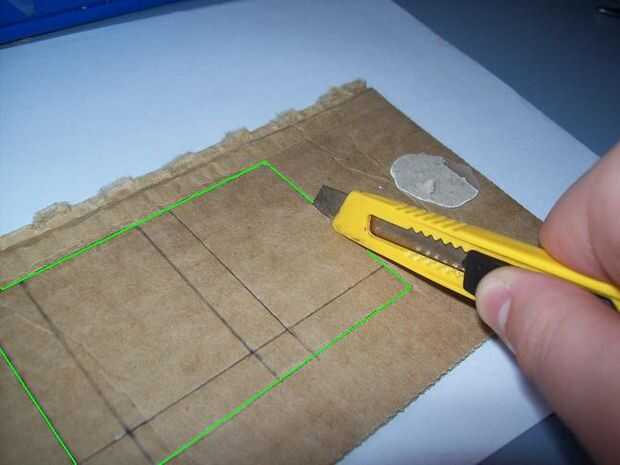 Corte alrededor de los bordes exteriores. Se destacan en una línea verde en la imagen de abajo. Entonces eliminar la red del resto de la cartulina. Tenga cuidado con el cuchillo.