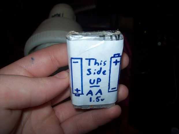 Su nuevo paquete necesita una etiqueta para mostrar que paso a insertar el paquete y poner las pilas en. Aquí es una batería previamente hecho con una etiqueta de papel en él. Podría hacer que sea más agradable e imprimir hacia fuera o lo que sea. Hacer el diseño similar a la que se muestra como es la forma de las pilas deben insertarse: de lo contrario no enciende.