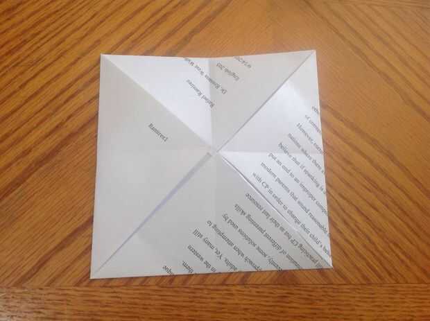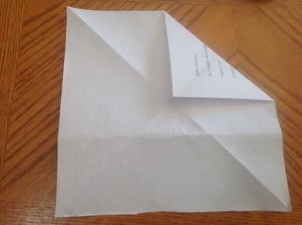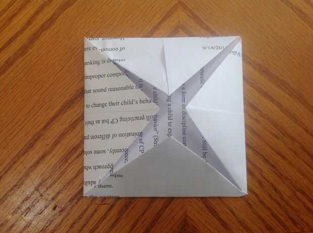 1. doblar la esquina de la plaza en el centro, por lo que la esquina coincide con el pliegue 2. hacer el resto de las esquinas. 3. Voltee al otro lado. 4. hacer lo mismo en las esquinas.