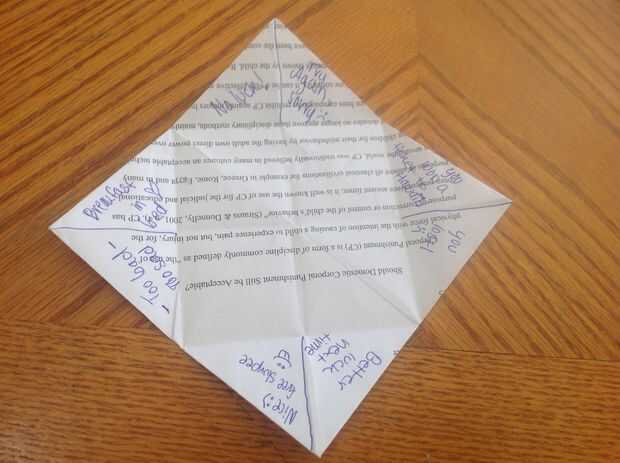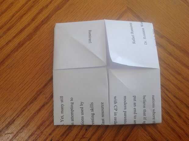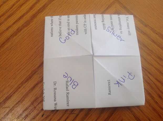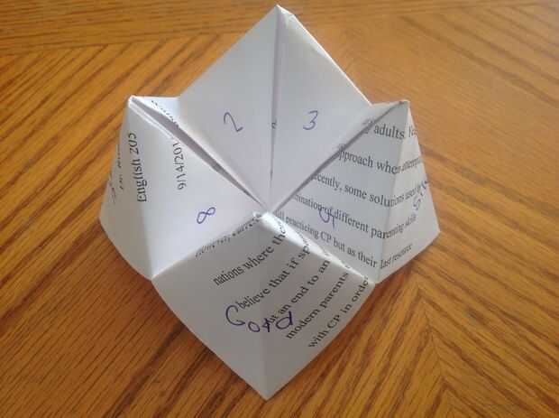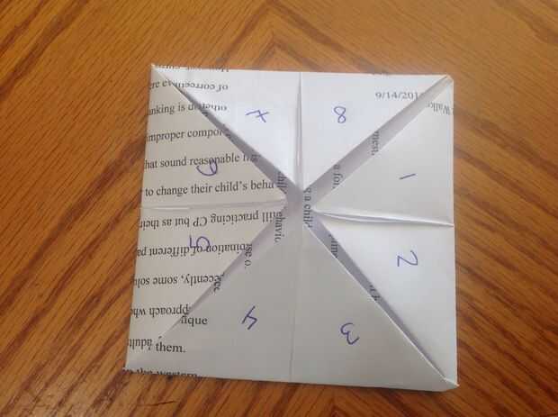 6. por último, construir el cootiecatcher una vez más como se muestra en la última foto.