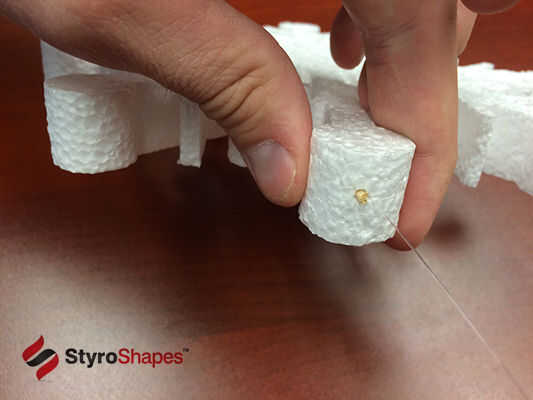 Empuje la línea en el copo de nieve del poliestireno con el extremo plano del palillo, presionando la línea el mismo tiempo.