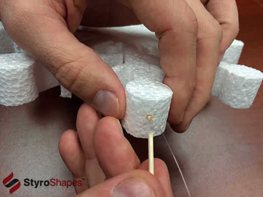 Utilizando el extremo plano de la selección de diente, empuje la selección de diente expuesta en la espuma de poliestireno para que no se puede ver.