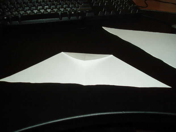 Desplegar el doblado en triángulo medio. Luego doblar la parte superior del triángulo hacia abajo de cerca de dos tercios del papel.
