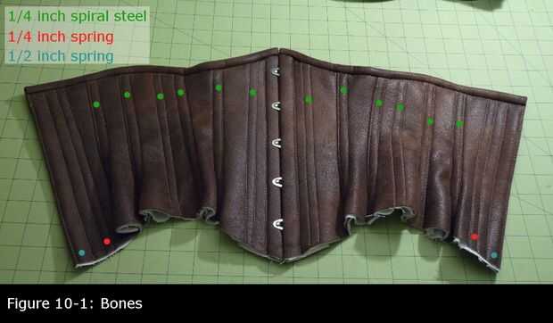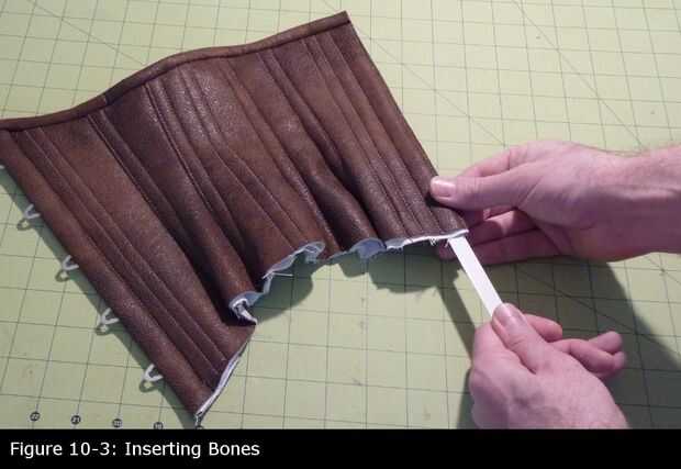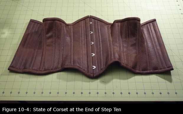 la costura de la cubierta del borde superior al borde inferior del corsé como en la figura 10-2. El