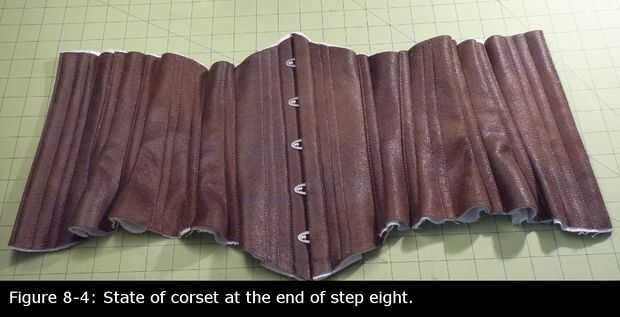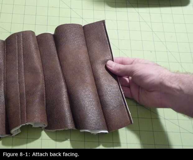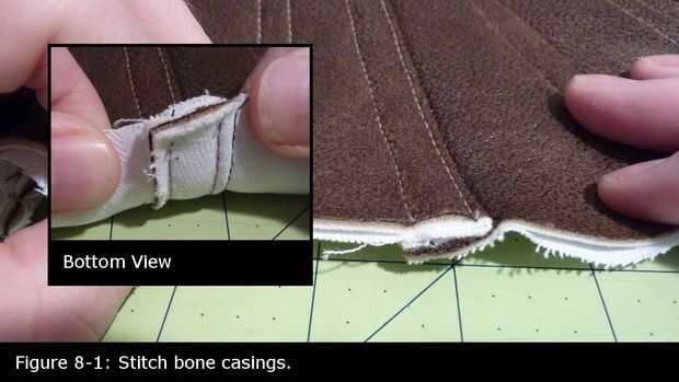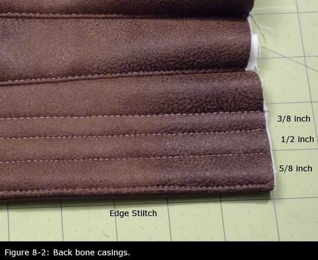 Configurar su máquina para 8 puntadas por pulgada y usar el hilo de rosca externo. Doblar hacia atrás sobre