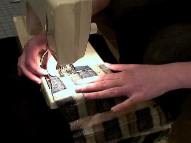 4. a continuación sacar una pieza exterior y la pieza de un trazador de líneas, coloque derecho lados juntos y la clavija. Cosa una costura siguiendo la línea del patrón trazado, pero deje un espacio así que usted puede dar vuelta adentro hacia fuera.