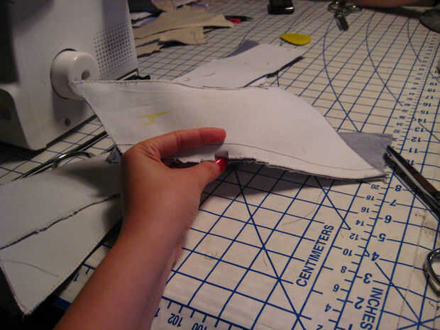 PIN juntos piezas 1 + 2 3 + 4 5 + 6 a lo largo de las costuras y puntadas abajo.