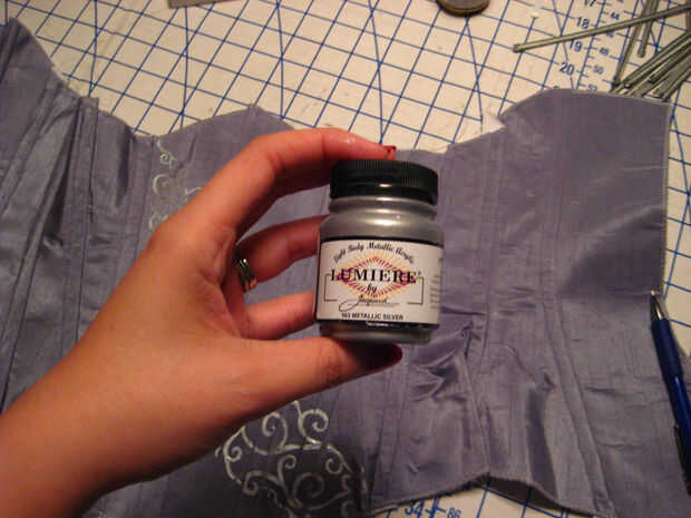 Usé pintura de tela de oro de Lumiere. Realmente sólo necesitas un poco de creatividad, confianza y un pincel fino.