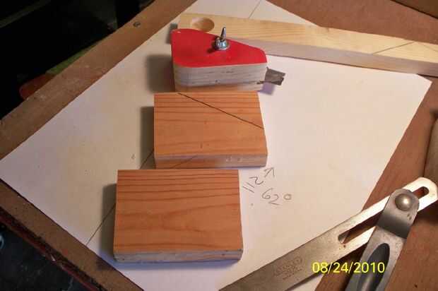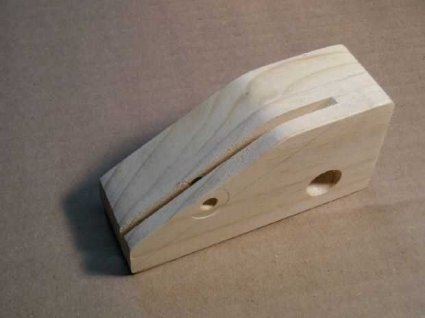 Uso llano madera de pino, corte a la forma como se muestra. Siga los cuadros y cortar las piezas como se indica. Quería que la última pieza para encajar mi mano, así que los bloques en ángulo y lija todo hasta redondo de cualquier borde filoso. Usé la Sierra de mesa, Sierra, lijadora y taladro en la producción de estas piezas.