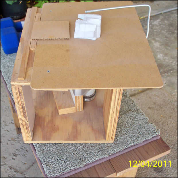 construí una caja para rodear el cortador de maravilla y proporcionan una "tabla" de la superficie para que formas podrían recortarse la espuma de poliestireno. Es una pieza bastante cruda, pero hizo el trabajo!