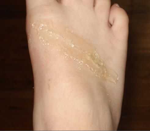-Verter algunos del gel sobre la zona que desea trabajar en. Utilice sus dedos para formar el tipo de línea en la siguiente imagen antes de que se seque el gel.