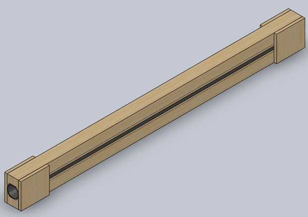 En el siguiente paso que tienes que hacer una ranura en ambas piezas de 1 metro para dar cabida a lo 40mm de PVC, el PVC deben ser aproximadamente 10 a 15mm en la madera, así que es un espacio de 10mm a la izquierda de la ranura en el lado del PVC. Usted puede hacer la ranura con el router de émbolo.