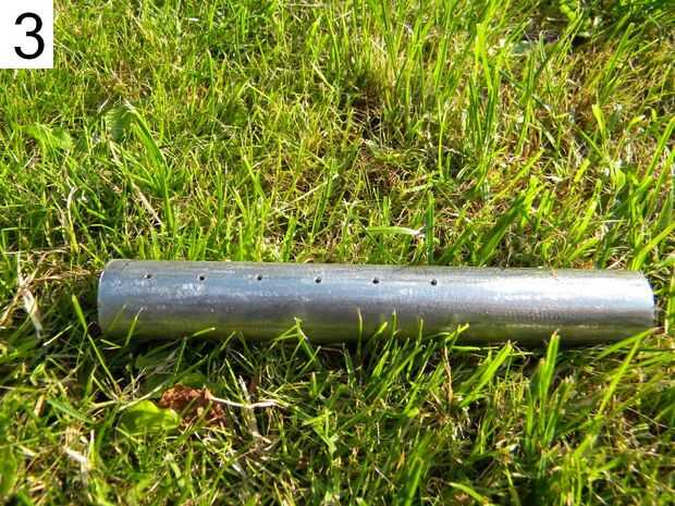3: Perfore agujeros en el tubo más pequeño, todos los espacios entre ellos iguales y en una línea recta. El espacio entre ellos será la longitud de lo anillos así; 1,5 cm para mí.