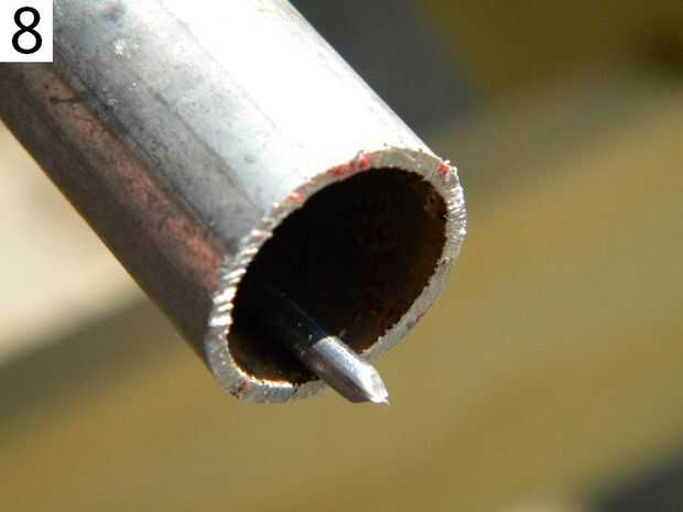 5: Mira cuánto deben ser los clavos. deben ir desde el más pequeño rube al tercer tubo y no toque el tubo 4. Para mí era 0, 7cm.