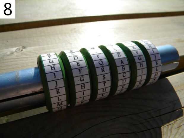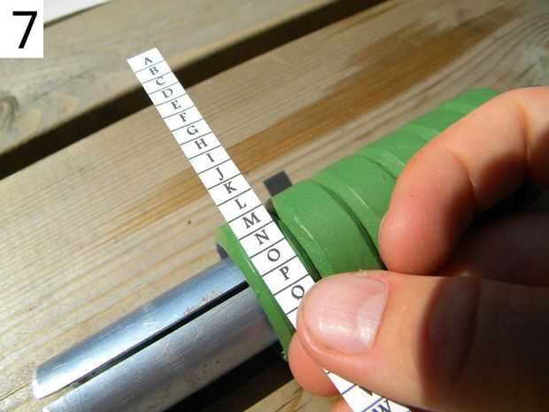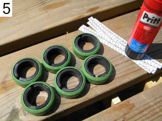 7: pegar la tira en los anillos con hobbyglue, con las letras de su contraseña en una línea.