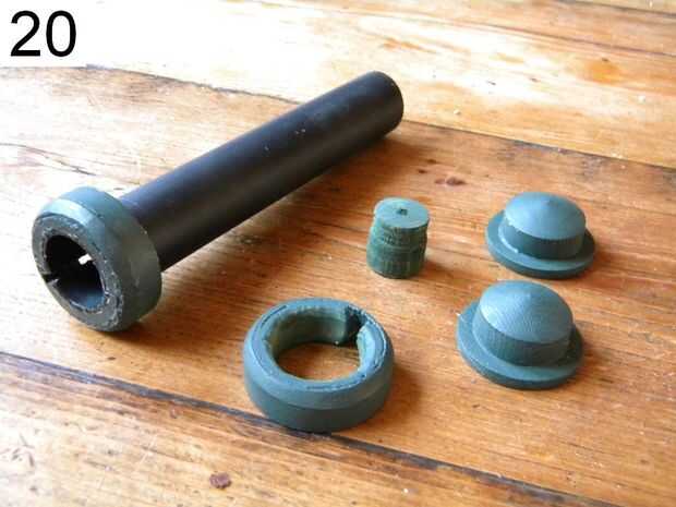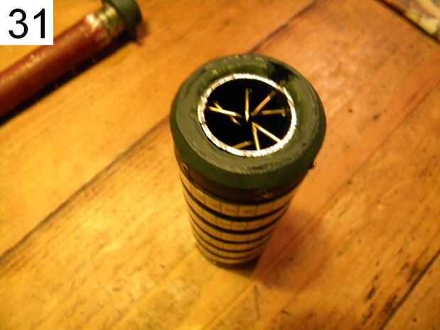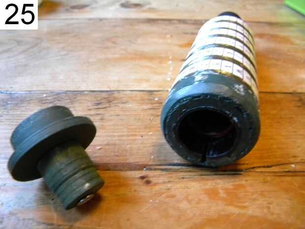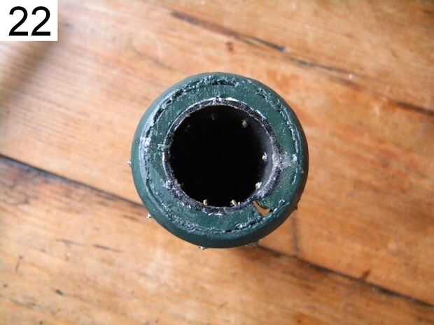 20: He pintado pero esa no era una buena idea, así no se todavía. Un montón de pintura fue más tarde porque necesitaba trabajar con él, así que tuve que repintar más adelante. Pero mira el cilindro con el borde amarillo, hice con la Dremel, cabe en el tubo más pequeño. Ver el siguiente paso para por qué lo necesitamos.