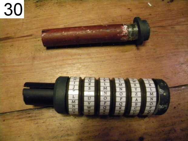 25: Ahora tienes a la izquierda. Llevar los anillos de marcado alrededor del cryptex y también el tubo interior. Que necesitamos saber es el lugar natural para los próximos pasos.