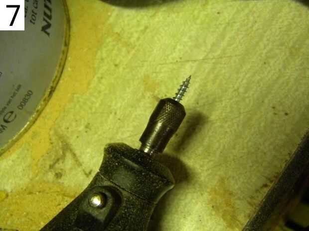 5: Tomar algo de madera que es un poco redonda y un tornillo que puede ser por la Dremel.