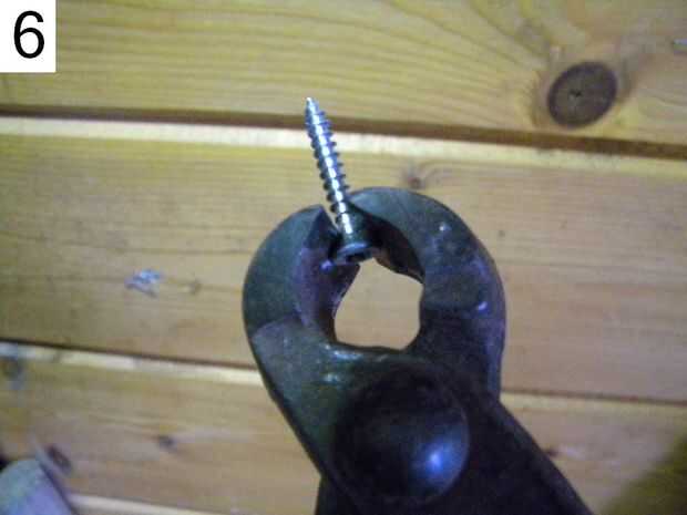 6: Decapitar el tornillo. Usted probablemente no puede hacer esto con las manos, pues Coloque la pinza con el tornillo de la mordaza de mesa y empezar a girar. Gafas, el tornillo se dispara. También es mejor poner algo en el tornillo ya, por lo que es más pesado y caerá en vez de volar lejos y puedes perderlo.